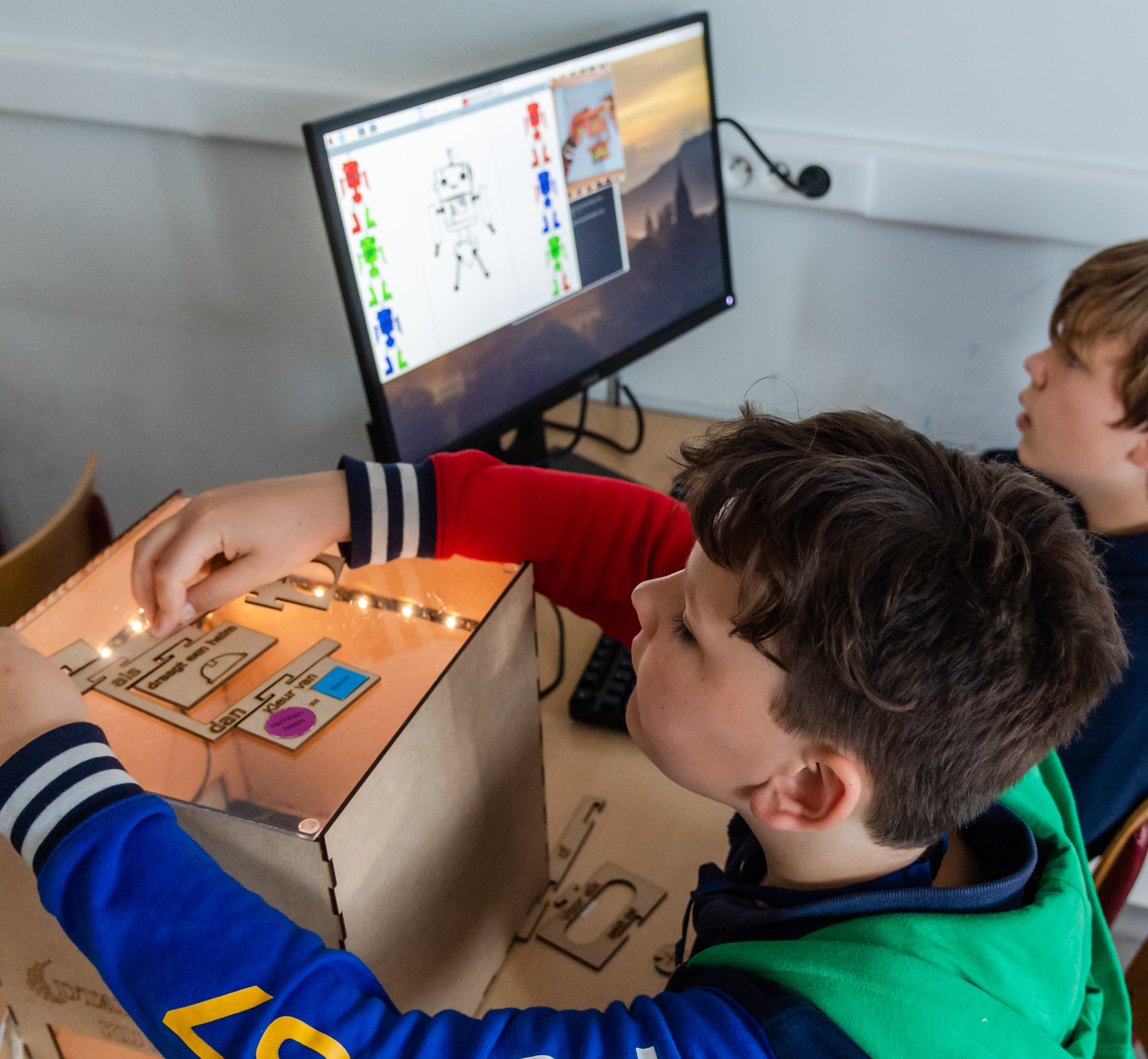 Children are tasked with describing knowledge on what separates “good” from “bad” robots. Learning to put an abstract idea into words is one of the fundamental skills that FOLL-E helps train.